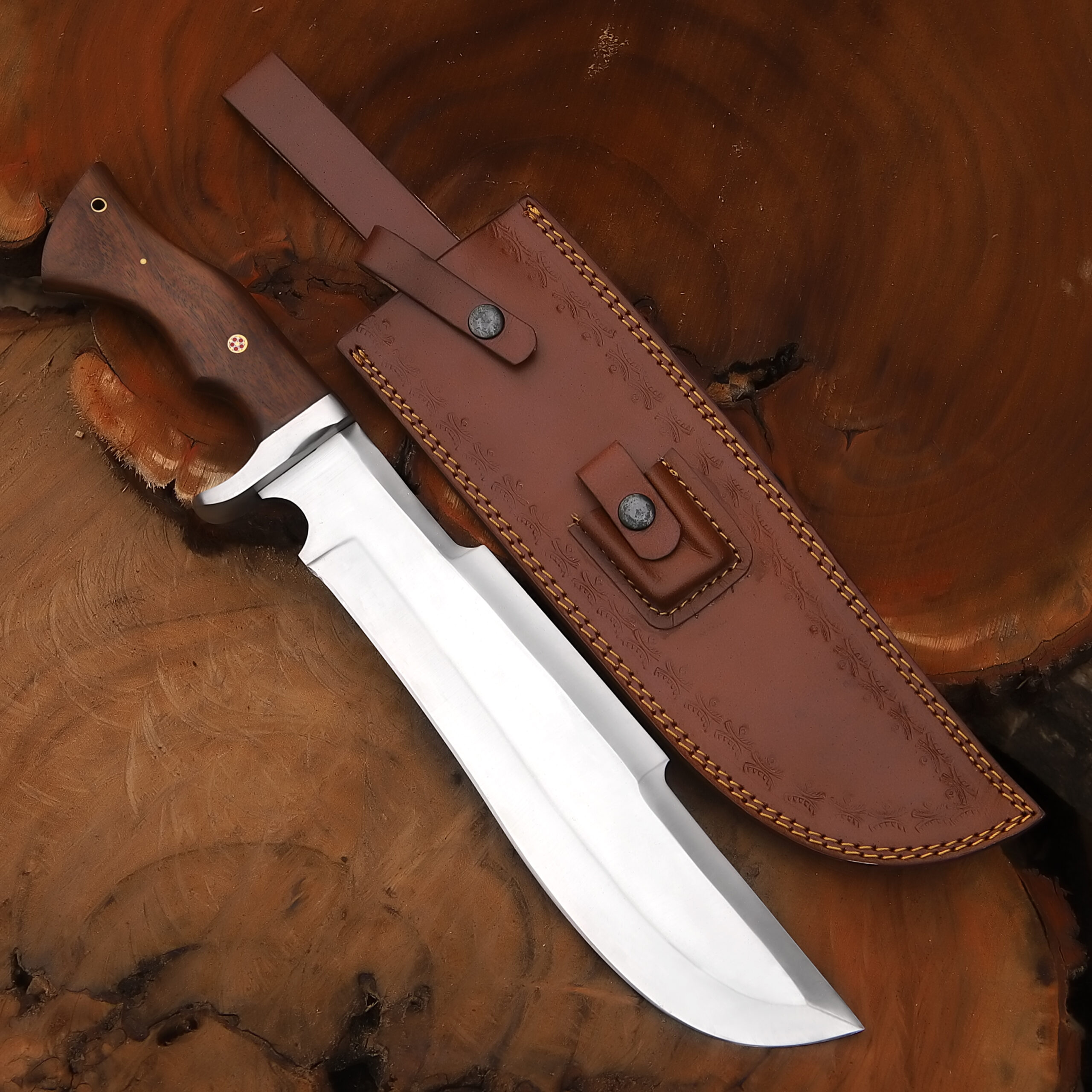 A rugged and reliable bowie knife featuring a razor-sharp stainless steel blade and a premium ergonomic wooden handle. Designed for hunting, camping, and survival, this knife delivers strength, precision, and long-lasting performance.